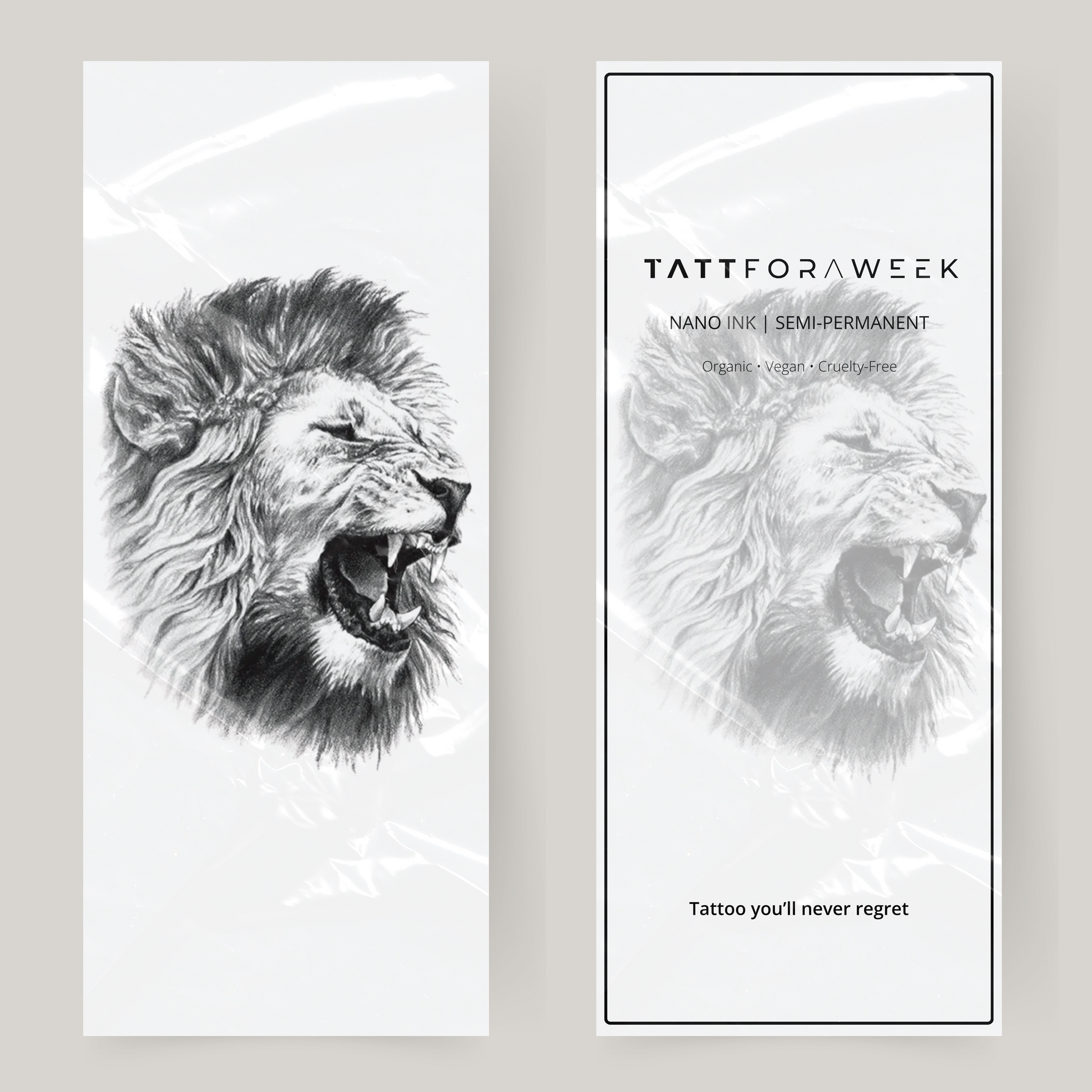 Prøv en brølende løve tatovering, uden permanente konsekvenser. Forbliver i op til 2 uger.
