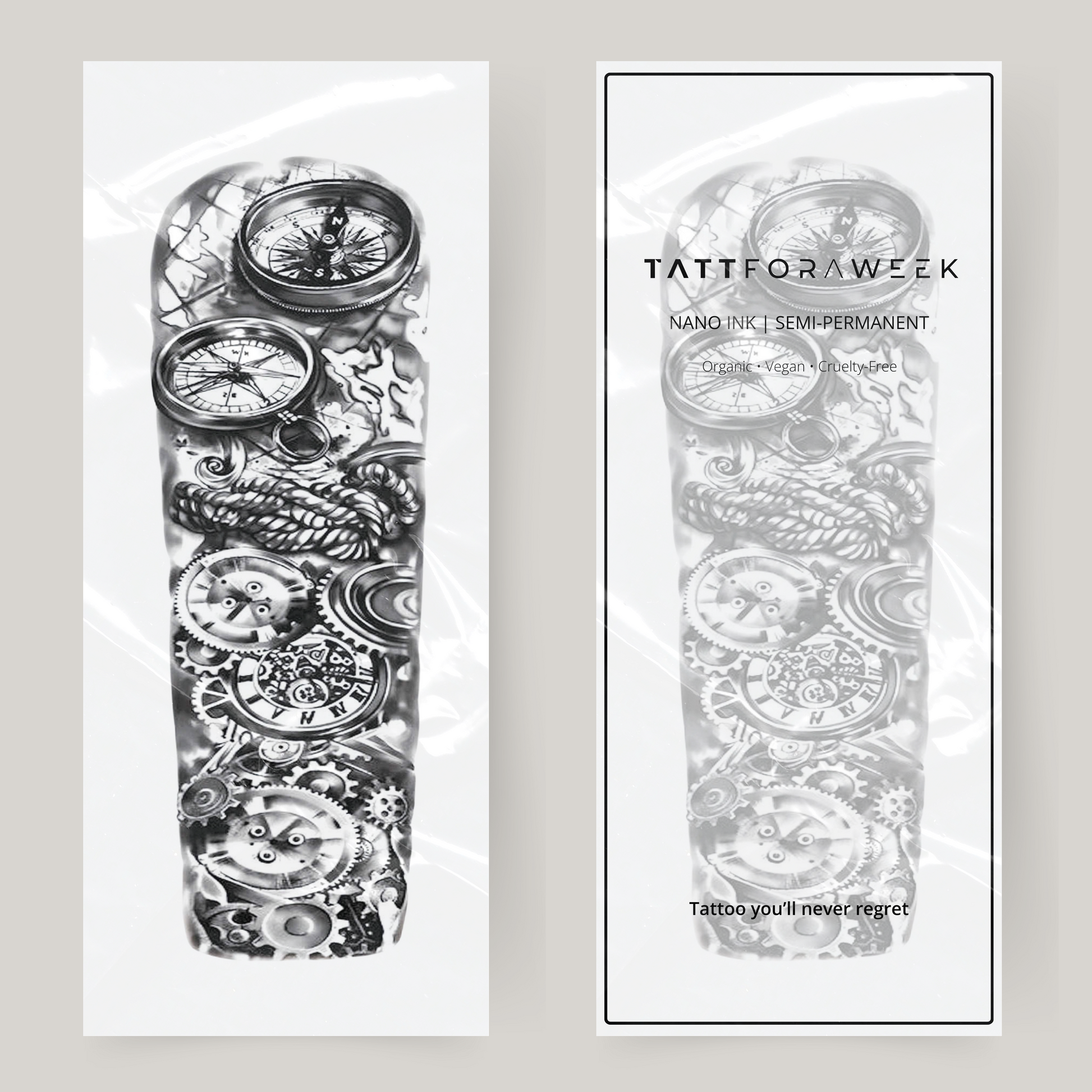 ✓ Detaljeret. Kæmpe klart midlertidig tatoveringsærme med synlige detaljer.
